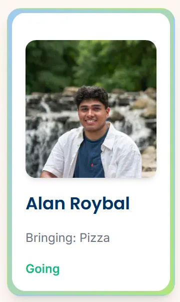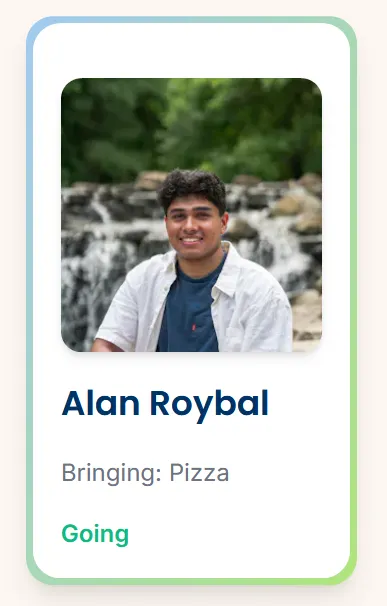 <div>which will have the white background, grow in size upon hover, and also contain all of our information such as the name of the attendee.