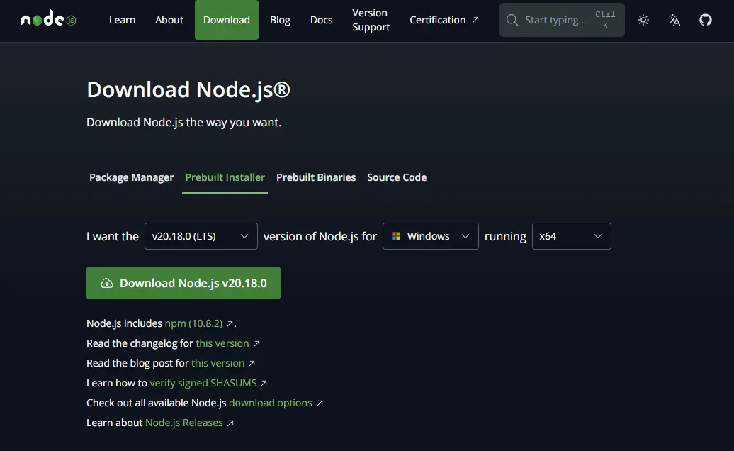 - Go to your web browser and search up Node.js (or click the embedded link)