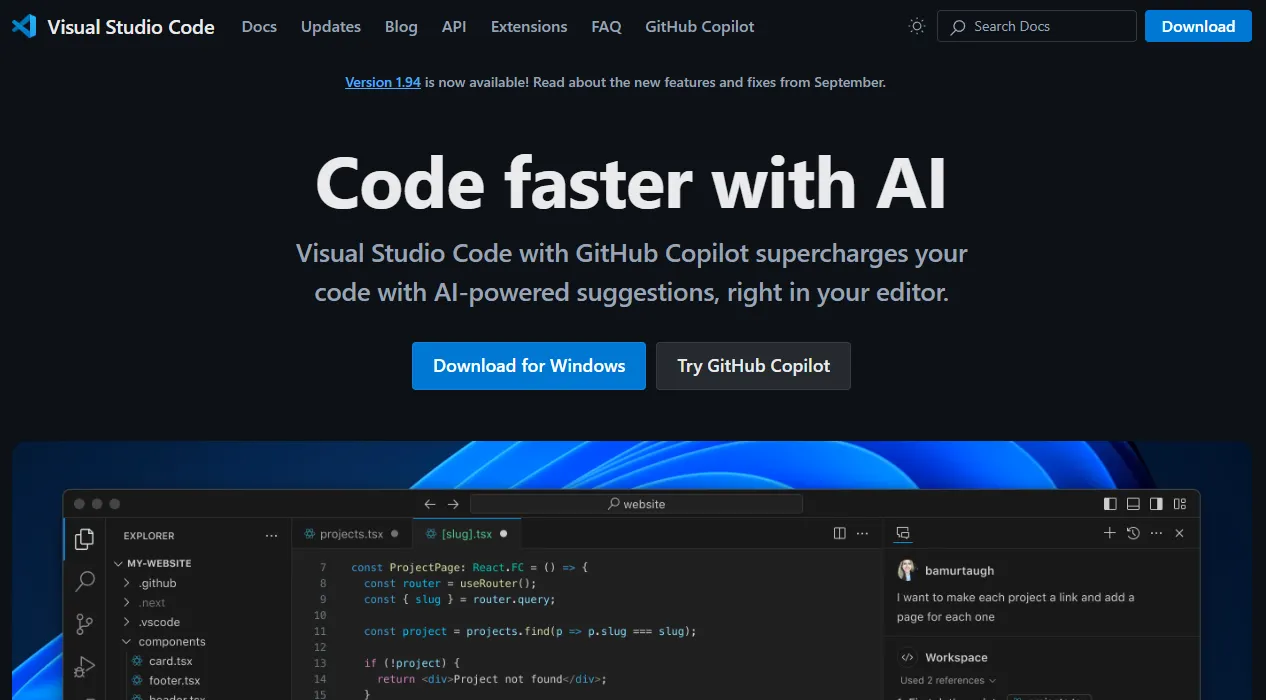 - Go to your web browser and search up Visual Studio Code (or click the embedded link)